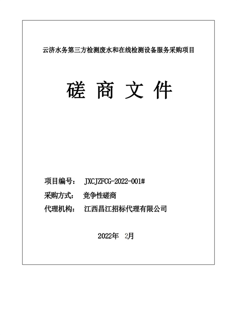 江西昌江招標(biāo)代理有限公司關(guān)于云濟(jì)水務(wù)第三方檢測廢水和在線檢測設(shè)備服務(wù)(項(xiàng)目編號:JXCJZFCG-2022-001#)競爭性磋商采購公告
