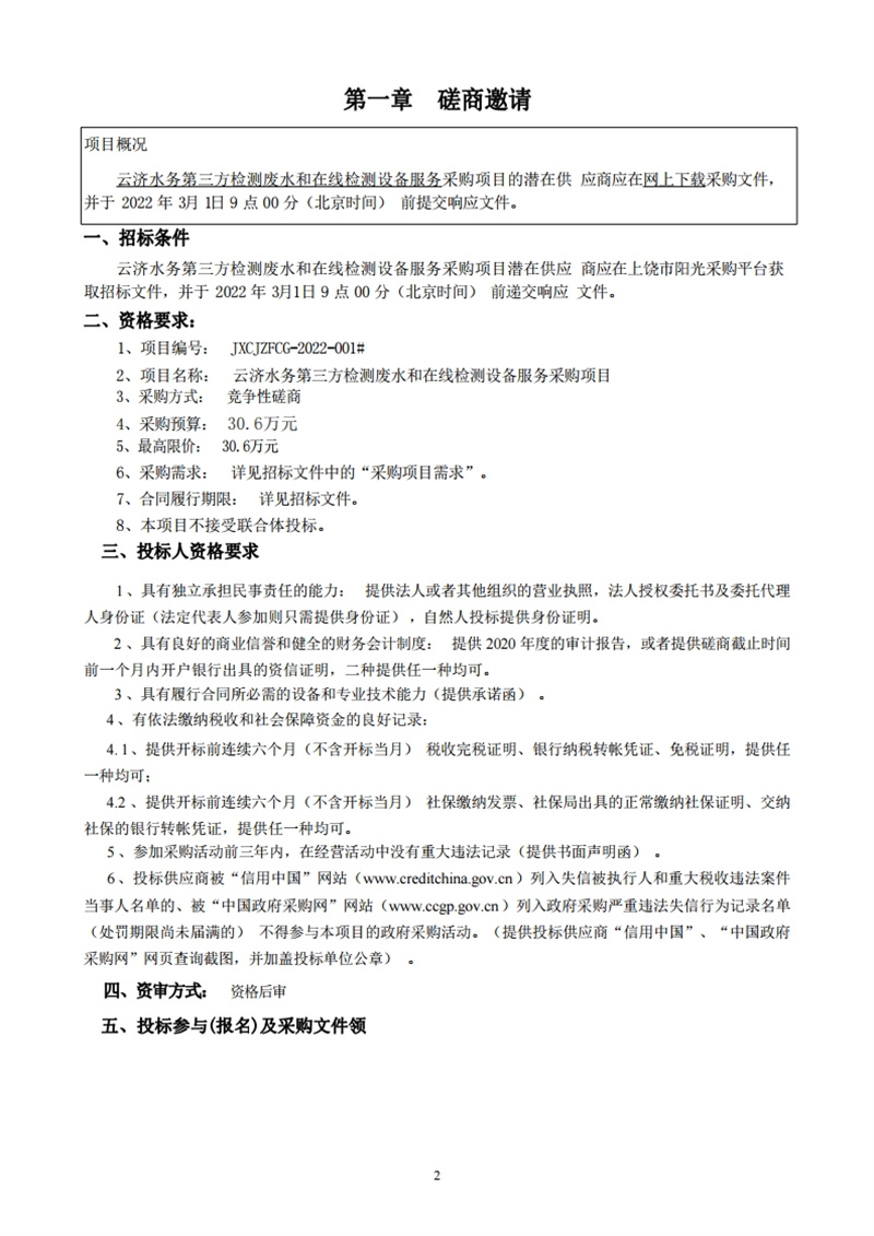 云濟(jì)水務(wù)第三方檢測廢水和在線檢測設(shè)備服務(wù)采購項(xiàng)目磋商文件